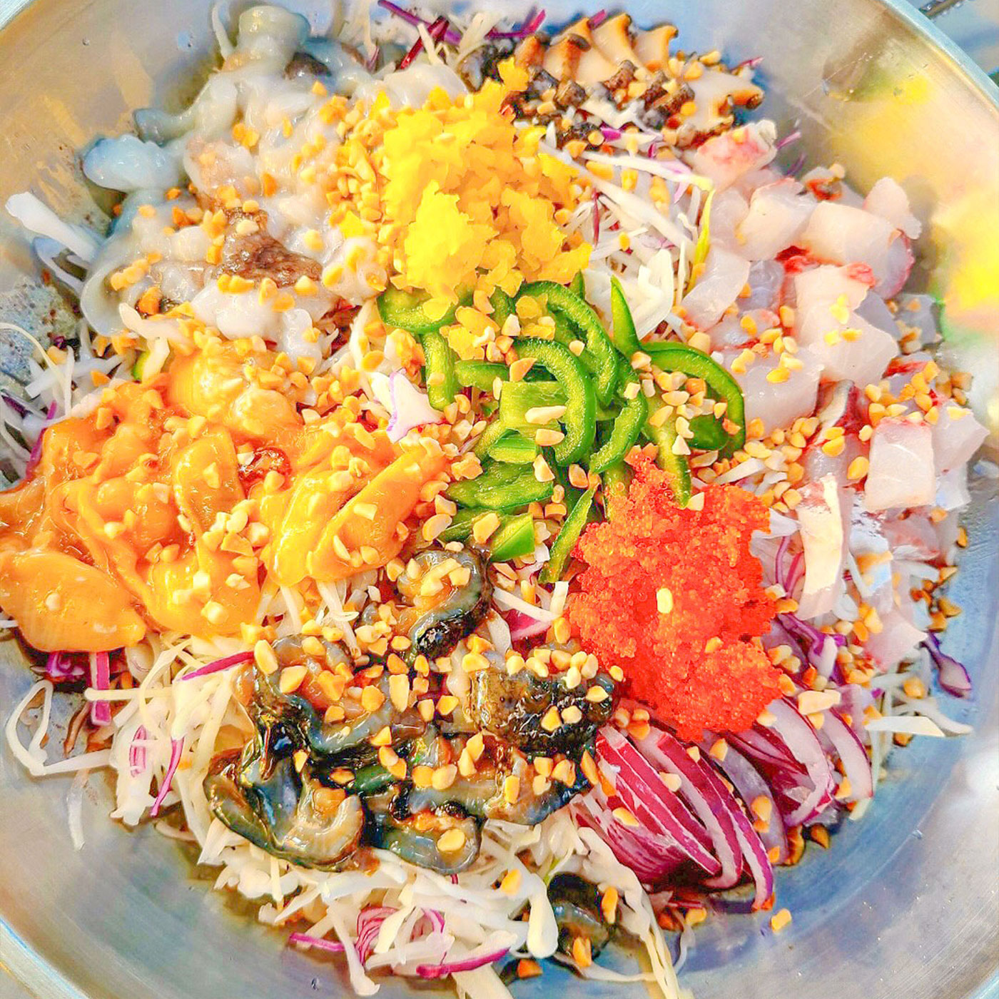 서로 다른 식감을 하나로 합쳐주는 매콤한 양념