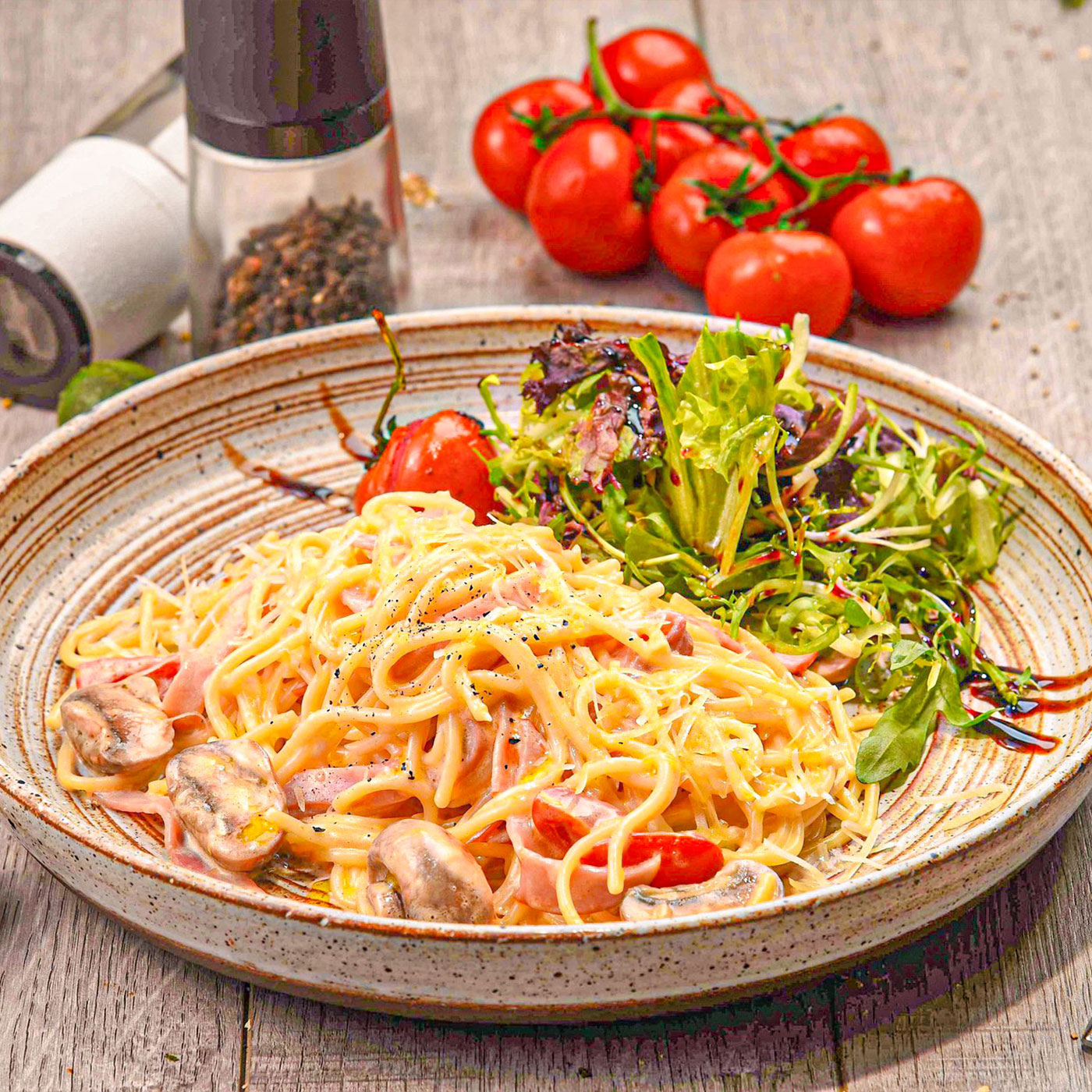 고소하고 크리미한 소스와 베이컨이 듬뿍~