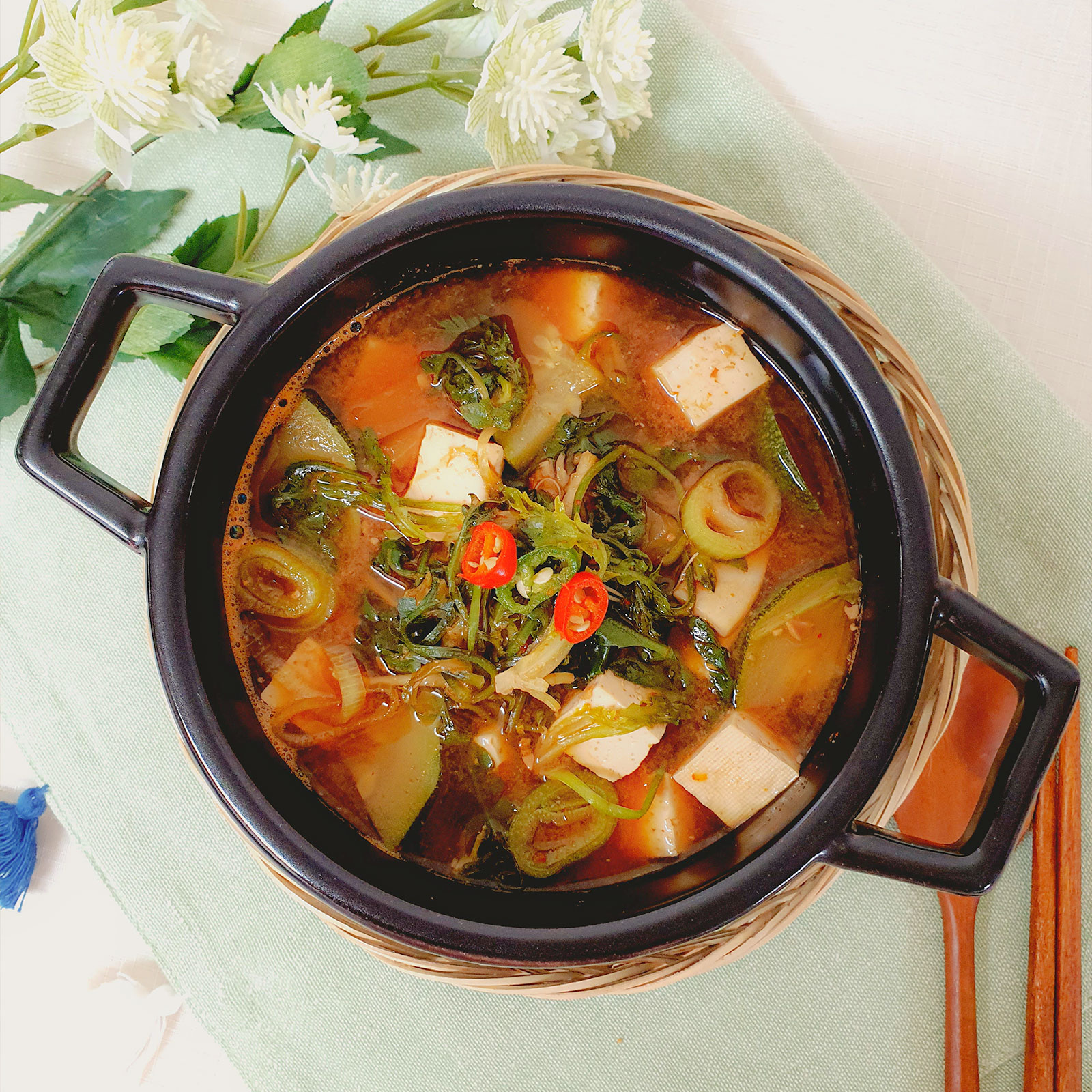 달달한 애호박을 잔뜩 넣은 구수한 된장찌개