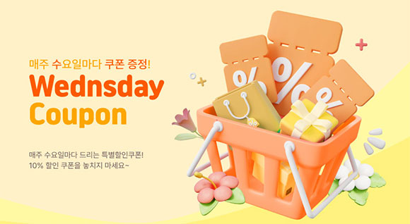 매주 수요일마다, 쇼핑몰에서 사용 할 수 있는 특별한 쿠폰을 드려요!