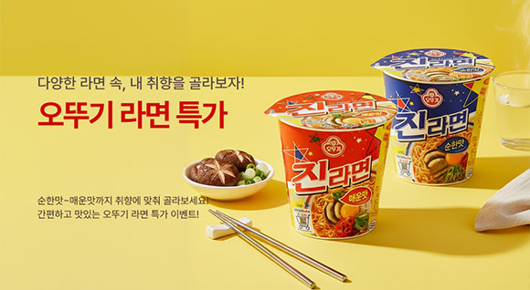 오뚜기의 다양한 라면들을 여기 한 자리에! 진라면부터 비빔면, 컵라면까지 다양한 상품을 즐겨보세요~